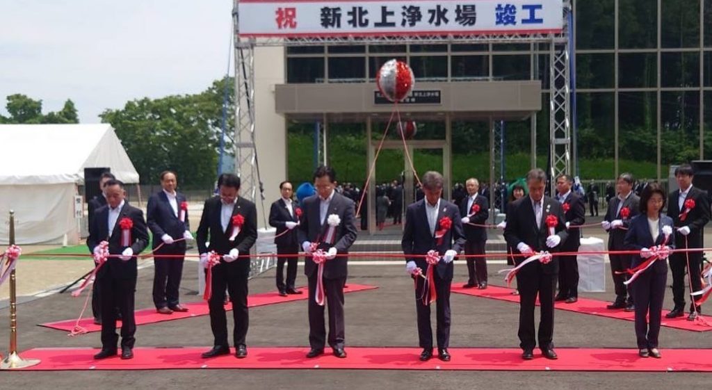 本日、北上中部工業用水道「新北上浄水場」竣工式に出席してくす玉開披に参加しました。