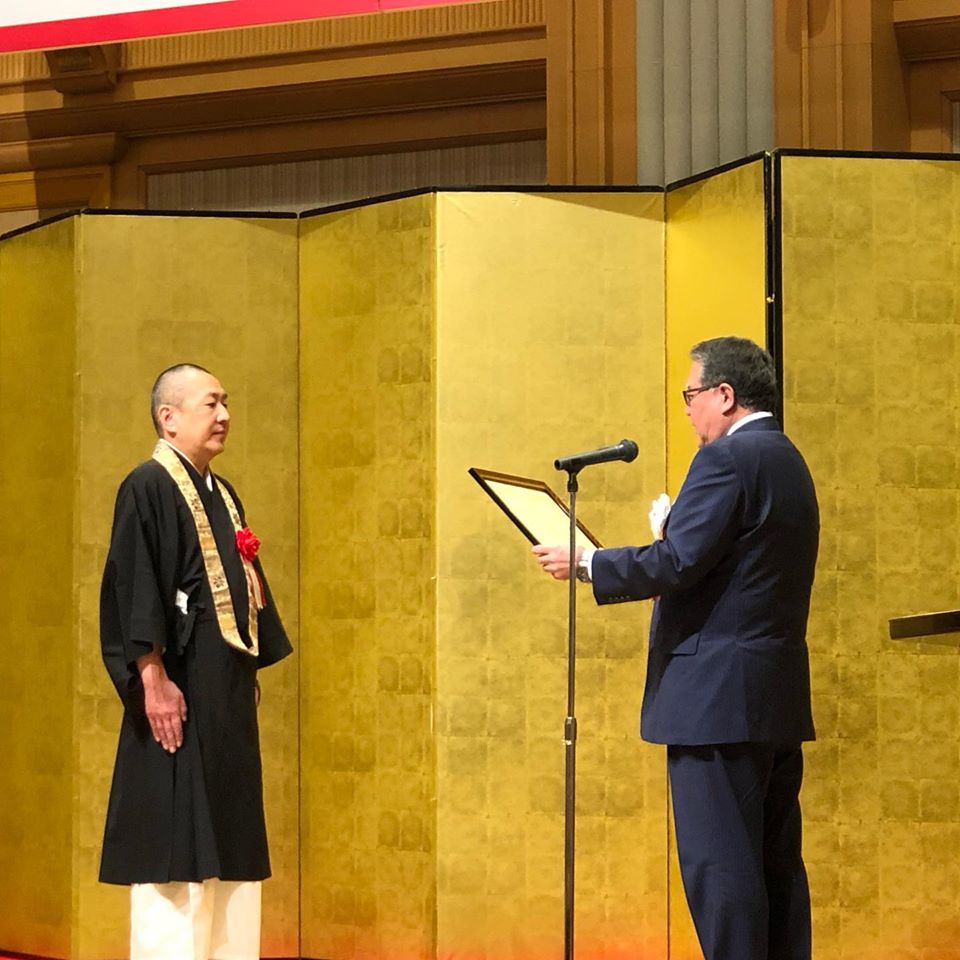 毛越寺藤里明久貫主による「延年」から式典が始まり、50年のあゆみを振り返る講演とともに、感謝状の贈呈が行われました。