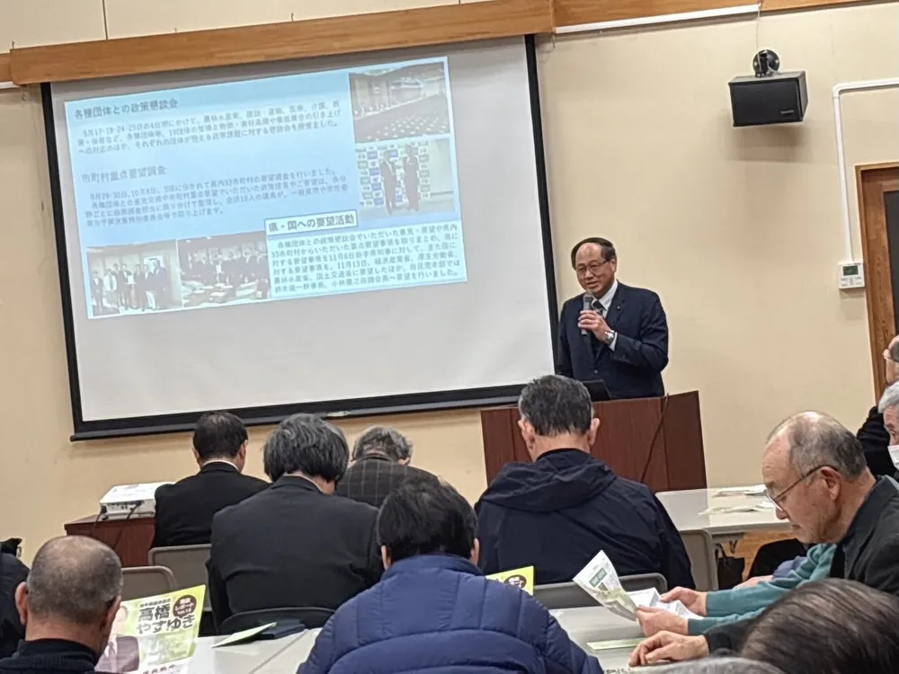 1月18日、岩崎地区交流センターで11日発行した県政レポートvol3の記事をもとに県政報告・懇談会を開催しました。