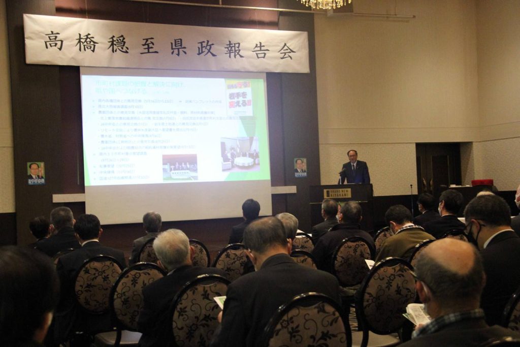 報告会冒頭に、北上市長より祝辞をいただいたほか、県政報告終了後には、藤原崇衆議院議員、広瀬めぐみ参議院議員にも挨拶いただき、最後に前日岩手県知事選へ立候補した千葉絢子さんの紹介もありました❗️
