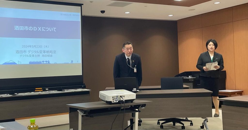 酒田市では、デジタル戦略室デジタル変革主幹 池田郁男氏から酒田市のDX戦略について説明を受けました。