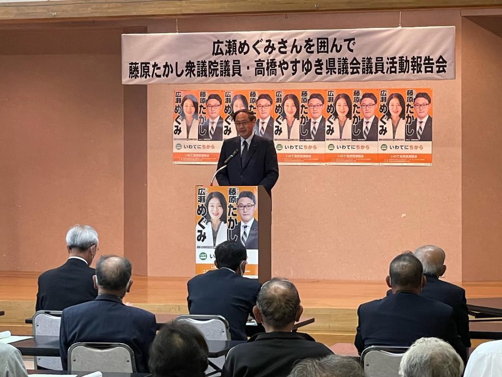 岩崎会場では、藤原崇衆議院議員の国政報告と居駒勉市議会議員の市政報告と共に!