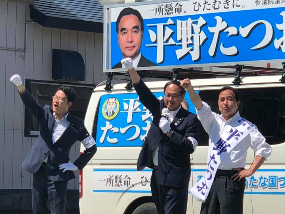 平野たつお議員、藤原崇衆議院議員と西和賀町の遊説