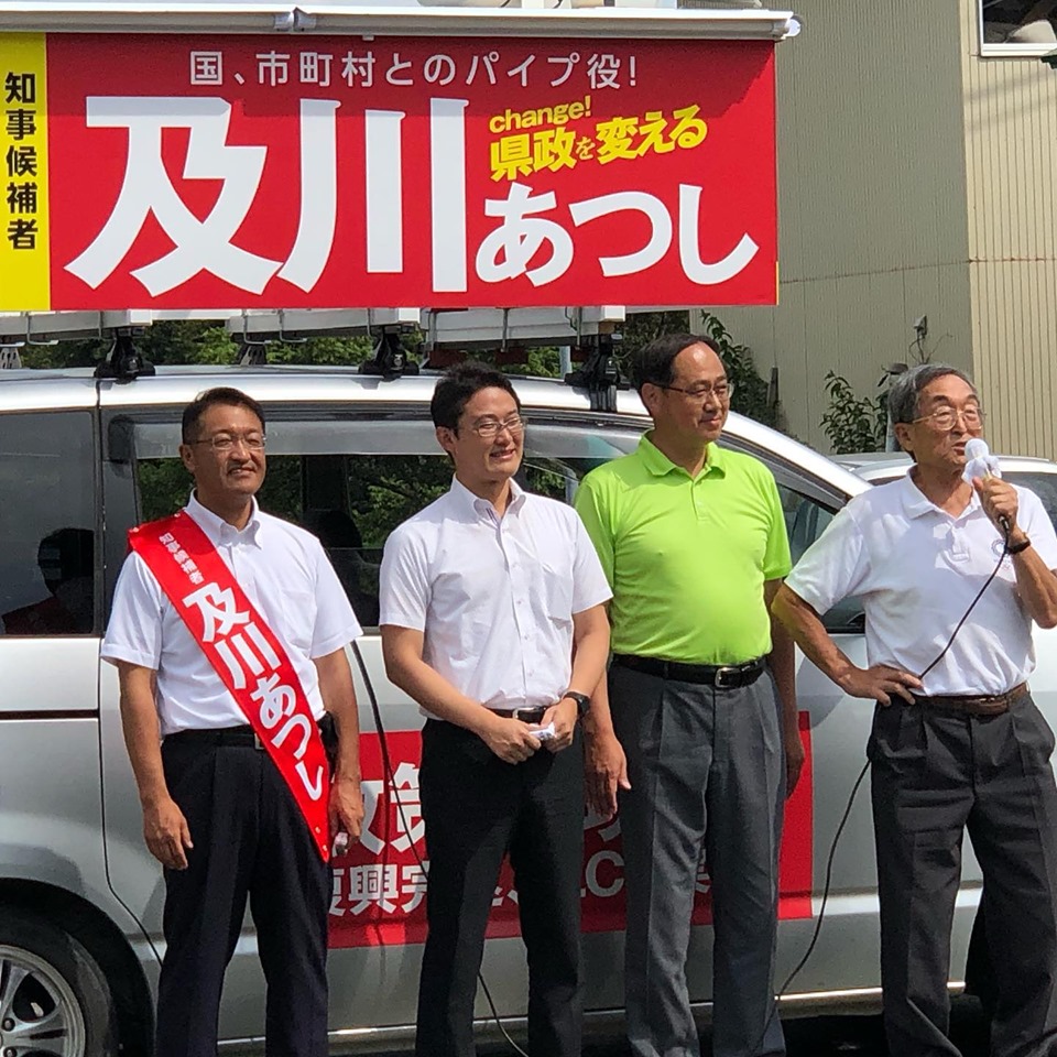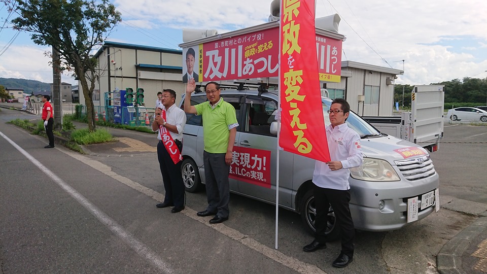 及川あつし県知事候補の遊説に同行しました