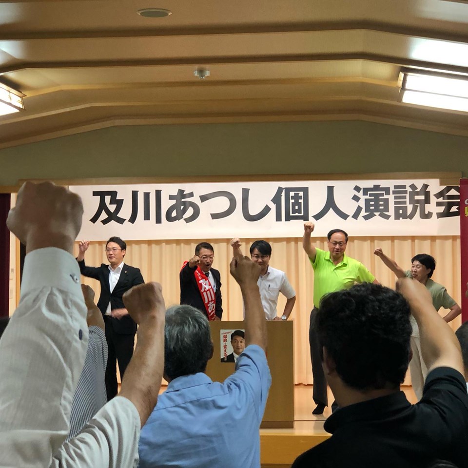 及川あつし県知事候補の個人演説会に参加しました。