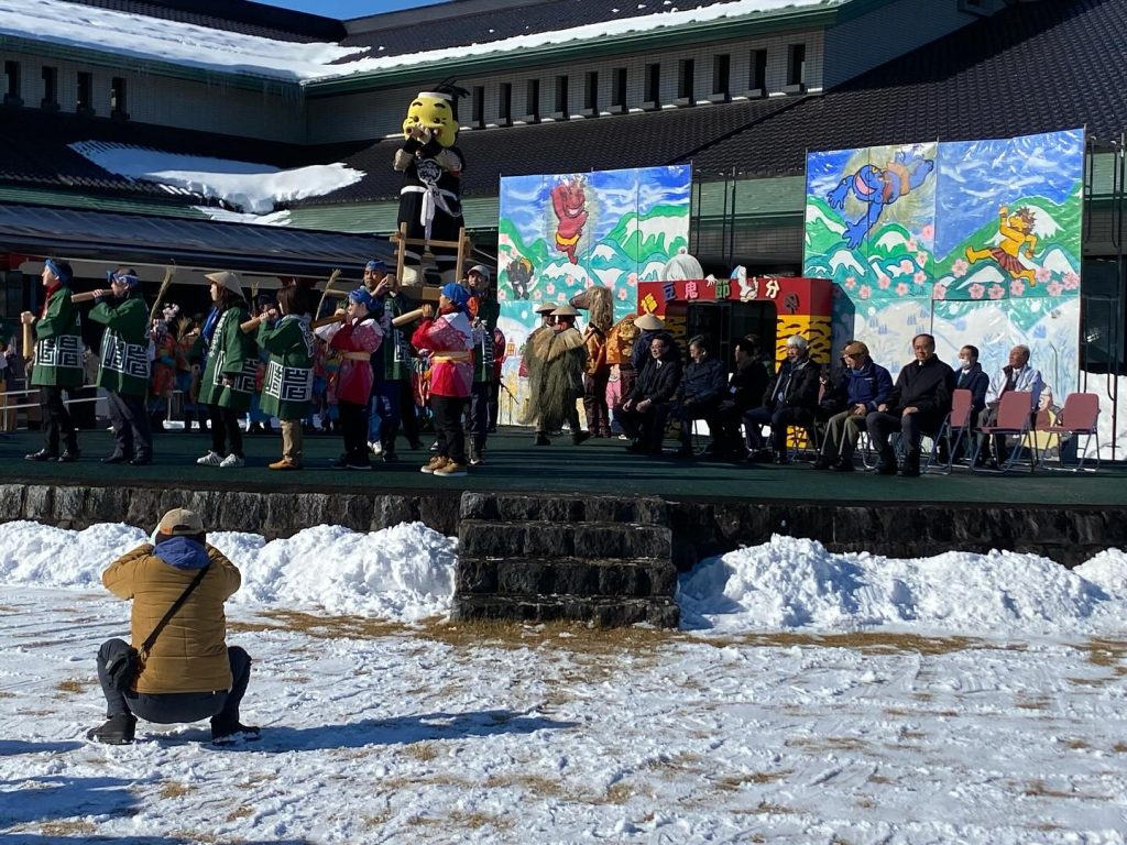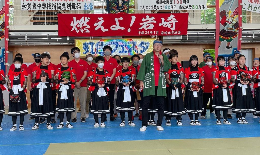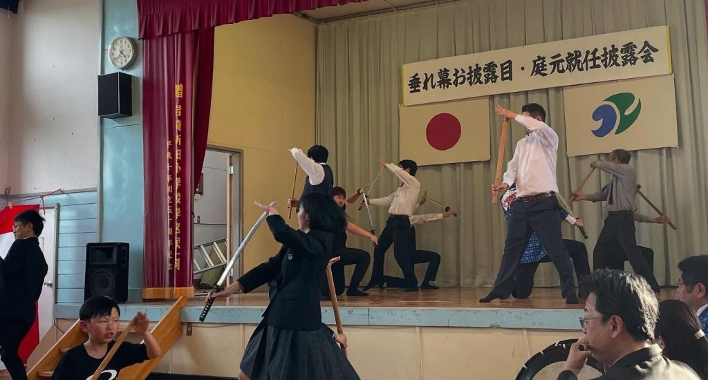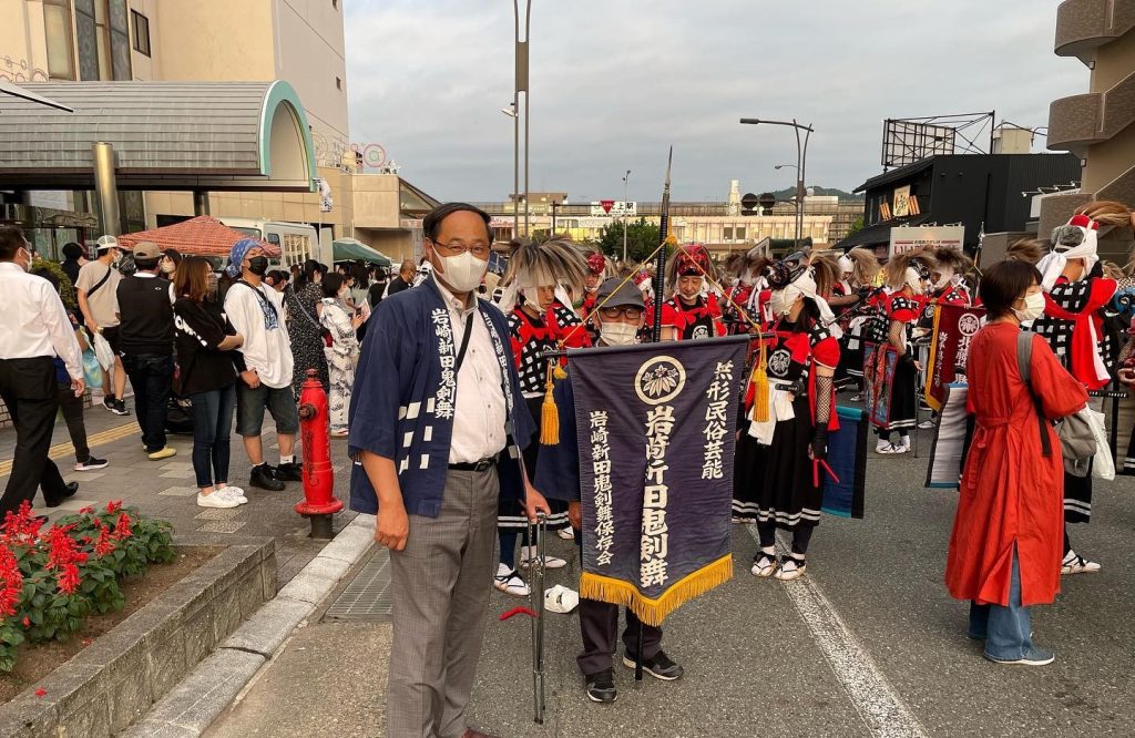 岩崎新田鬼剣舞の団体旗お披露目会と庭元の引き継ぎ会